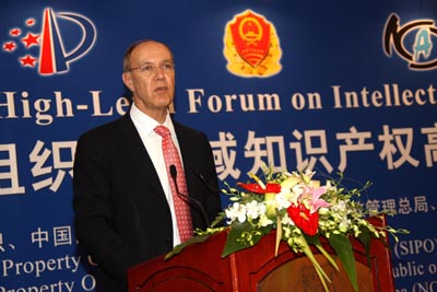 3月30日,世界知識(shí)產(chǎn)權(quán)組織總干事高銳博士在論壇開(kāi)幕式上致辭。當(dāng)日,由世界知識(shí)產(chǎn)權(quán)組織和中國(guó)國(guó)家知識(shí)產(chǎn)權(quán)局、國(guó)家工商局、國(guó)家版權(quán)局等單位主辦的“世界知識(shí)產(chǎn)權(quán)組織跨區(qū)域知識(shí)產(chǎn)權(quán)高級(jí)論壇”在北京開(kāi)幕。