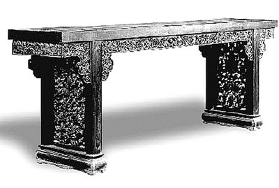 清乾隆紫檀雕西番蓮大平頭案。 |
