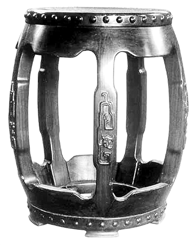 清紅木五開(kāi)光夔龍紋鼓墩。 |
