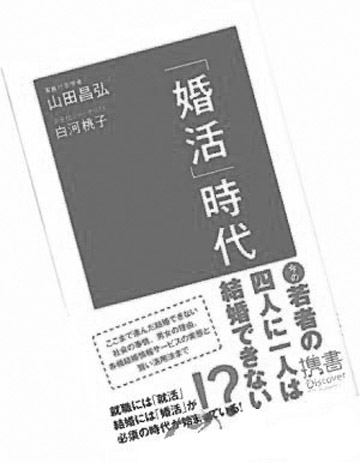 《“婚活”時(shí)代》由社會(huì)學(xué)家山田昌弘和記者白河桃子合著,去年年初一經(jīng)上市即售出17萬冊(cè)。這兩名作者把日語“婚姻”和“活動(dòng)”兩詞合成“婚活”一詞,意為一切與結(jié)婚相關(guān)的活動(dòng)。他們鼓勵(lì)未婚青年主動(dòng)出擊,因?yàn)樽纫庵腥顺霈F(xiàn)遠(yuǎn)遠(yuǎn)不夠。