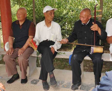 6月26日,寧夏賀蘭縣老年公寓的老人在自娛自樂。 據(jù)寧夏回族自治區(qū)人力資源和社會保障廳介紹,寧夏在提前兩年實現(xiàn)全區(qū)醫(yī)療保險制度全覆蓋的同時,大力推進農(nóng)村社會養(yǎng)老保險,先后有2.1萬人參加農(nóng)村社會養(yǎng)老保險,8324人領取養(yǎng)老金。