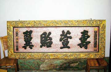 據(jù)收藏專家介紹,中國古典牌匾按外觀形式可分為橫幅和豎幅兩類,也有橫幅與豎幅同時使用的對聯(lián)形式。在我國明清時期民宅的門楣、壽梁和枋梁等處,常?梢砸姷揭猿烧Z典故、前輩留言為題材的牌匾,涵蓋了為人處世、經(jīng)商秘訣等富有思想性、哲理性的文化內(nèi)容。