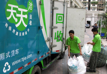 8月29日,北京首個(gè)“再生資源回收日”正式啟動(dòng)。在城八區(qū)生活垃圾零廢棄小區(qū)內(nèi)的18個(gè)回收站點(diǎn),市民可以用自己手中的“垃圾”兌換成精美的小禮品。今后,北京市將每個(gè)月最后一個(gè)星期六定為“再生資源回收日”。