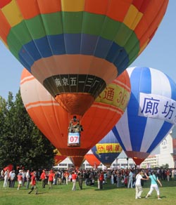 8月30日,第三屆中國(廊坊)國際熱氣球節(jié)在廊坊國際會展中心開幕。本屆熱氣球節(jié)以“休閑廊坊、放飛夢想”為主題,共有來自全國各地的20支熱氣球隊參加,期間還有氣球噴火、亮球、高空跳傘、動力傘飛行表演以及熱氣球圖片展等活動。