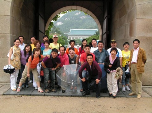 團(tuán)員們在韓國總統(tǒng)府青瓦臺前合影留念