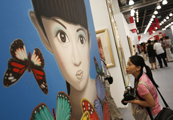 9月9日,2009上海藝術(shù)博覽會在上海世貿(mào)商城開幕。本屆博覽會展示面積達(dá)到2.4萬平方米,來自美國、法國、德國、韓國、日本等10多個國家的120多家海內(nèi)外畫廊和機(jī)構(gòu)在藝博會上集中展示了各類題材的國畫、油畫、雕塑、攝影、裝置藝術(shù)等作品。新華社記者