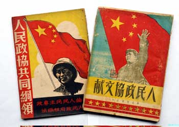 鄭州市民楊翔飛收藏的1949年出版的人民政協(xié)文獻(xiàn)資料和宣傳刊物。 |