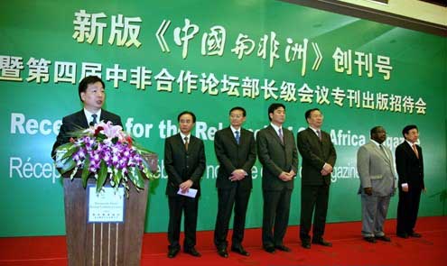 2009年10月30日,北京周報(bào)社在凱賓斯基飯店舉行了新版《中國(guó)與非洲》創(chuàng)刊號(hào)暨第四屆中非合作論壇部長(zhǎng)級(jí)會(huì)議?霭嬲写龝(huì)。國(guó)家主席胡錦濤為新版《中國(guó)與非洲》創(chuàng)刊號(hào)暨第四屆中非合作論壇部長(zhǎng)級(jí)會(huì)議專刊發(fā)了致辭,國(guó)務(wù)院新聞辦公室副主任王國(guó)慶在招待會(huì)上宣讀了胡錦濤的致辭。 國(guó)家主席胡錦濤致辭指出,中國(guó)人民珍視同非洲人民的傳統(tǒng)友誼,始終視非洲人民為完全可以信賴和依靠的全天候朋友,愿同非洲人民永做好兄弟、好伙伴。致辭希望《中國(guó)與非洲》雜志為加強(qiáng)中非傳統(tǒng)友誼,促進(jìn)中非相互交流、團(tuán)結(jié)協(xié)作、共同發(fā)展,推進(jìn)中非新型戰(zhàn)略伙伴關(guān)系作出貢獻(xiàn)。