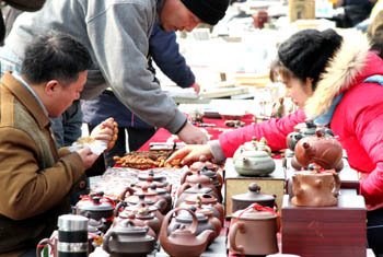 1月3日,古玩愛好者在蘇州市工人文化宮古玩交易市場“淘寶”。新年小長假期間,在當?shù)嘏e辦的新年古玩交易市場熱鬧非凡,吸引了眾多古玩愛好者前來“淘寶”。 |