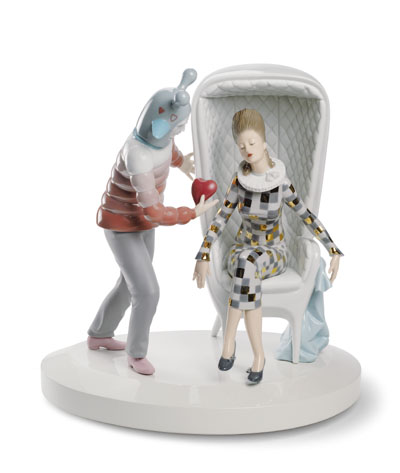 雅致新作Lladró夢(mèng)幻系列之魔法時(shí)刻集夢(mèng)幻與現(xiàn)實(shí)感于一身,詮釋了最坦率真摯的愛(ài)情姿態(tài)。同樣以JaimeHayón設(shè)計(jì)生涯中最具代表性的設(shè)計(jì)元素——Showtime扶手椅作為創(chuàng)作基礎(chǔ)。這款作品的設(shè)計(jì)非常精妙,一位曼妙的女郎坐在扶手椅上,愛(ài)情魔法師為了向女郎表達(dá)自己的愛(ài)意,將自己的心作為禮物獻(xiàn)給她。這件作品是整個(gè)Fantasy夢(mèng)幻創(chuàng)品系列中的重點(diǎn)之作,完美地結(jié)合了Lladró與JaimeHayón的藝術(shù)風(fēng)格。 |