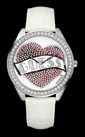 ▲銀色鑲水晶拋光表殼,白色琺瑯鑲紅水晶心形GUESSLOGO表盤,白色仿鱷魚皮表帶……所有這些元素都構(gòu)成了GUESS新款女士腕表系列TattooYou(個(gè)性文身)的必備元素。男士方面,叛逆、歐羅巴運(yùn)動(dòng)和周游世界成為了GUESS表款的新一季主題。