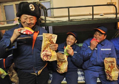 1月15日是北京進(jìn)入三九的第七天。早上6點(diǎn),室外依然是零下十幾度的低溫,往常這個(gè)時(shí)候,正是環(huán)衛(wèi)工人們開始一天忙碌的時(shí)刻。今天,東直門街道環(huán)衛(wèi)點(diǎn)顯得格外熱鬧,在這里,環(huán)衛(wèi)工人們吃上了他們開工前一份熱騰騰的早餐。 記者在現(xiàn)場(chǎng)看到,在不到20平米的宿舍內(nèi),環(huán)衛(wèi)工人洗漱完畢,正整理工具準(zhǔn)備奔向各自的管片兒。正在這時(shí),肯德基餐廳的員工們冒著嚴(yán)寒給他們送來了冒著熱氣的早點(diǎn):一份燒餅、一份雞蛋灌餅和一碗粥。同時(shí)送到大家手上的,還有一個(gè)特殊的卷軸,“環(huán)衛(wèi)工人你最棒”幾個(gè)大字下面滿滿印著幾百個(gè)紅色大拇指手印,這正是在肯德基餐廳里收集到的來自北京市民的祝福,道出了全體北京市民的心聲。 新年伊始,一場(chǎng)60年不遇的大雪襲來,京城呈現(xiàn)銀裝素裹美麗妝容的同時(shí),大雪也為北京居民的出行添了一把不小的“堵”,為了讓大家安全、準(zhǔn)時(shí)地上班上學(xué),環(huán)衛(wèi)工人展開了一場(chǎng)持續(xù)數(shù)十小時(shí)的大奮戰(zhàn)。環(huán)衛(wèi)工人王長榮就是在惡劣天氣下持續(xù)奮戰(zhàn)倒在工作崗位上的,他的事跡牽動(dòng)了無數(shù)市民的心,也讓環(huán)衛(wèi)工人這個(gè)名字再次成為社會(huì)的焦點(diǎn)。 北京肯德基在第一時(shí)間利用餐廳資源向北京市民展開“環(huán)保工人你最棒”的愛心手印征集,與此同時(shí),積極與街道辦事處、環(huán)衛(wèi)部門舉得聯(lián)系,希望為環(huán)衛(wèi)工人送上自己的一份愛心。 一位在餐廳按下手印的北京市民特意通過餐廳向傳達(dá)他對(duì)環(huán)衛(wèi)工人的謝意,并賦詩一首: