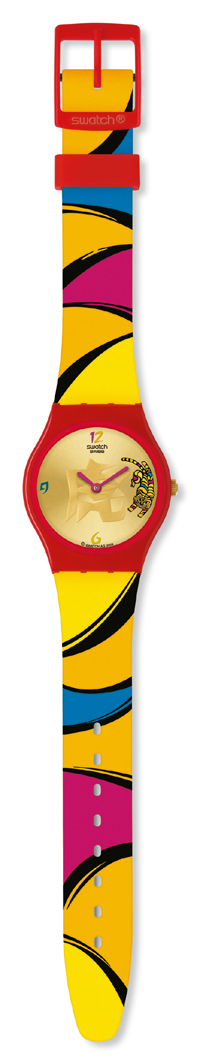 Swatch為這個(gè)專屬于中國(guó)人的特別節(jié)日奉上了一款生肖腕表——炫虎迎福。這款腕表以時(shí)尚設(shè)計(jì)與中國(guó)傳統(tǒng)風(fēng)格遙相呼應(yīng)。明黃色的腕帶與鮮紅色的帶環(huán)相配,飾以五色相間的彩色條紋。表盤中央印有一個(gè)碩大的啞光金色中國(guó)漢字“虎”,精致的浮雕工藝令它鮮活而富有層次。表盤上橫跨3點(diǎn)的位置繪制著一只縱身躍起的炫虎,亮麗的紅色指針在表盤中心不停的跳動(dòng),記錄著歡悅的分分秒秒。 |