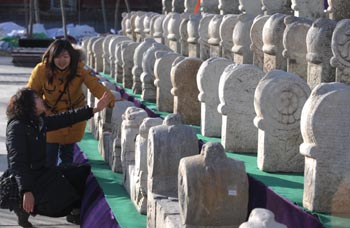 在2009北京國(guó)際雕塑公園新春文化廟會(huì)上,由天津運(yùn)來(lái)的近300對(duì)明清時(shí)期大型京津門(mén)墩亮相廟會(huì),供游人在逛廟會(huì)的同時(shí)欣賞。資料照片 |
