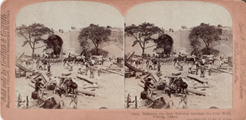 格林菲斯立體照片公司,北京城內(nèi)的新的鐵路建設(shè),1902。 |
