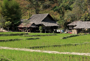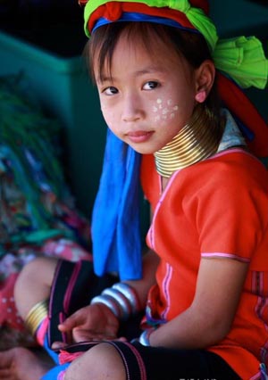 “長頸村”位于泰國北部清萊省亞帕村,是泰北最受歡迎的觀光景點。 長頸族即卡倫族,原本聚居在泰國北部與緬甸交界處的一個山區(qū)小鎮(zhèn)——湄宏頌鎮(zhèn)。鎮(zhèn)里人口不到3萬人。族人們除了鹽是仰給于外界,大體上自給自足,主要以耕種、捕獵維生。長頸族的原居住地——乃梭村,更是“養(yǎng)在深閨無人知”。旅行者若想要真正體驗原汁原味的長頸風(fēng)情,只得造訪湄宏頌鎮(zhèn)外30公里的乃梭村,但由于前往乃梭村的交通等基礎(chǔ)設(shè)施落后,多數(shù)旅行者都會在清萊省亞帕村的民族文化村里一睹泰北著名的長頸風(fēng)情。 “長頸村”坐落在山澗之間,簡陋的茅屋是人們的棲身之所,門前屋后秧苗翠綠。巴掌大的民族村內(nèi)不僅居住著長頸族,還有其他的族群如阿卡族、拉扈族、大耳族、苗族等等,目前約有200多人。 這里的女人們每天要做的唯一工作就是穿上民族傳統(tǒng)服飾,把自己打扮得漂漂亮亮,打開房門坐在自家屋檐下做些輕便的手工活,也會銷售其他的手工藝品如項鏈、手鐲、明信片之類。男人們都不在家,女人們通常在白天都不被允許離開民族村,她們需要年復(fù)一年、日復(fù)一日地配合世界各地慕名而來的觀光客拍照以及回答些枯燥的詢問。據(jù)說她們在這里生活,每個月可得到4000銖的薪水。 通常按長頸族的習(xí)慣,女孩從5歲起就開始戴頸圈、腳環(huán),而且會隨著年紀(jì)增長逐年加圈。這里的女孩子們幾乎都跟她們的母親一樣,幼嫩的脖子上已套上了好幾圈沉重的黃銅項圈。6歲的“巴雅”是村里最小的一個長頸妹妹,她被母親打扮得花枝招展,小臉上也涂上了代表美麗的花紋,嘟著小嘴無聊地坐在門口的板凳上疊紙飛機,根本不抬頭理睬來往的游客。我在她的板凳上坐下,掏出一塊巧克力遞到她的眼皮底下,她才抬起呆滯的眼神,見到巧克力才綻開笑顏。 從村頭走到村尾,很讓我意外的是長頸村的女孩子長得都很水靈,服飾保持著古樸的傳統(tǒng),喜好色彩鮮艷的布料,加飾繡邊,上衣線條簡單、下衣基本為黑色短裙,頭上纏著彩色的布帶或是其他繁瑣的飾花,小腿上的銅環(huán)與脖子上一色,腳套的布料通常與上衣的顏色相襯。 我試著拿起擺在攤位上的銅項圈展示品,一只手拿不起來,兩只手還覺得很沉,真沒想到會這么重。這些銅圈戴上脖子后便不再取下來了,甚至睡覺時也戴著,想想就很不方便。面對我的疑問,一個女孩笑著回答:“習(xí)慣就好了”。 戴銅項圈的習(xí)俗在卡倫族已有數(shù)百年之久,而這種習(xí)俗的起因由于沒有文字記載,所以眾說紛紜。在無數(shù)的傳說中,我更傾向女性戴項圈是為了炫耀家庭財富的說法。這種獨特的傳統(tǒng)的確讓人驚訝,也讓人好奇。對長頸族來說,這是美麗的象征。但我想每次換項圈時,她們看到自己頸項上黑色的壓痕,會不會覺得這是一種傷害呢? |