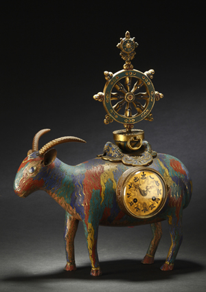北京保利拍賣有限公司在六次赴美公開(kāi)征集中國(guó)文物之后,將于2010年7月30日-8月2日在北京舉行回流文物精品拍賣會(huì)。本次拍賣會(huì)包括中國(guó)書(shū)畫(huà)與古董珍玩兩個(gè)部分,其中有瓷器、工藝品、文房雅玩、玉器等各個(gè)門類近兩千件拍品,同時(shí)還將在國(guó)內(nèi)首次推出英國(guó)銀器專場(chǎng)拍賣。圖為拍品《清乾隆掐絲琺瑯羊駝法輪西洋座鐘》。