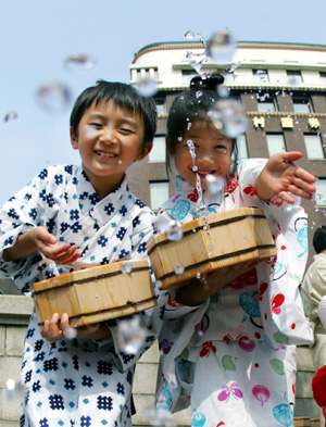 7月中旬,陰雨連綿的梅雨季結(jié)束了,日本迎來了酷熱難耐的盛夏時(shí)節(jié)。應(yīng)對(duì)酷暑,日本人自有良方,有的甚至演變成了傳統(tǒng)民俗活動(dòng)。 灑水是日本以前夏季降溫的主要手段。東京都淺草地區(qū)的灑水活動(dòng)有著悠久歷史,在盛夏時(shí)節(jié),淺草居民會(huì)一起手持水桶或水盆,上街灑水,達(dá)到降溫的效果。日本的“灑水大作戰(zhàn)本部”就設(shè)立在淺草,灑水活動(dòng)已擴(kuò)大到全國(guó),從大暑到處暑的一個(gè)月間,日本全國(guó)會(huì)有700多萬人上街灑水。灑水大作戰(zhàn)是為了解決地球溫室化和城市熱島效應(yīng)問題,目標(biāo)是把城市溫度降低兩攝氏度,F(xiàn)在,東京一些公共場(chǎng)所也會(huì)從屋頂往下噴灑水霧,達(dá)到降溫的效果。 在窗外放置簾子也是日本夏季傳統(tǒng)的避暑方法。簾子有各種樣式,包括懸掛的,立式的等等,一般是竹簾或葦簾。傳統(tǒng)日式木造住宅在夏季往往會(huì)擺放高過屋檐的立式葦簾,把住宅南邊整個(gè)遮蔽起來,使室內(nèi)格外清爽。不過在現(xiàn)代的鋼筋混凝土建筑中,傳統(tǒng)的簾子則比較少見了。 風(fēng)鈴則是日本夏季的“風(fēng)景詩(shī)”,風(fēng)鈴清脆的叮咚聲會(huì)使人感覺到風(fēng)的吹拂,從而產(chǎn)生一絲涼意,這是通過聽覺來達(dá)到避暑效果。在銀座這樣的繁華之地,也會(huì)有貨郎挑著挑子,出售各種風(fēng)鈴。東京附近川崎市平間寺的風(fēng)鈴節(jié)是日本最大規(guī)模的風(fēng)鈴節(jié),7月18日開幕,將持續(xù)到21日。900多種、數(shù)萬個(gè)風(fēng)鈴遍布寺內(nèi),盛況空前。 夏季人們往往食欲不振,身體能量流失快,而日本人夏季特別講究吃鰻魚。鰻魚營(yíng)養(yǎng)豐富,美味可口,享受鰻魚飯可以免除“苦夏”之憂。 日本人酷愛養(yǎng)花種草,整個(gè)東京也看不到多少黃土露天的地方。種植綠色植物不僅是日本人的愛好,也是一個(gè)避暑的手段,因?yàn)榫G色植物從視覺上給人清爽的感覺。日本很多地方都種植爬山虎等爬藤植物,既擴(kuò)大了綠化面積,也降低了室內(nèi)溫度。此外,日本校園正在大力實(shí)現(xiàn)草坪化,即把整個(gè)校園操場(chǎng)都鋪滿草坪。草坪能夠減少積水,減輕熱島效應(yīng),目前東京都的155所公立中小學(xué)校都建成了草坪操場(chǎng)。 日本傳統(tǒng)的三大避暑勝地包括輕井澤、高山和野尻湖,分別以山、海、湖見長(zhǎng)。富士五湖、箱根、那須、六甲山等地也都是避暑勝地。此外,日本是個(gè)群島國(guó)家,風(fēng)景優(yōu)美的海灘眾多,而且這些沙灘都是免費(fèi)對(duì)市民開放的。由于空調(diào)的普及,去避暑地的意義已經(jīng)大大減輕。不過隨著建設(shè)低碳社會(huì)意識(shí)的增強(qiáng),現(xiàn)在日本人又開始重視去避暑地避暑這一低碳生活方式了。盛夏時(shí)節(jié),人們紛紛擁到海灘,通過海水浴來避暑,不少沙灘都淹沒在遮陽傘下,從空中鳥瞰,千萬頂遮陽傘蔚為壯觀。 盛夏也是日本民俗活動(dòng)眾多的時(shí)節(jié)。神奈川縣茅崎的抬神轎入海儀式就非常著名,眾多游客也能趁機(jī)洗個(gè)海水浴,緩解一下酷熱。而在盂蘭盆節(jié)期間舉行的盂蘭盆舞會(huì),更是夏季最為盛大的活動(dòng)。盂蘭盆舞會(huì)一般在晚上舉行,也是為了能讓市民享受夜晚的涼風(fēng)。日本各地都會(huì)搭起高臺(tái),懸掛起燈籠,一些領(lǐng)舞者站在高臺(tái)上,然后市民環(huán)繞高臺(tái),可以圍成幾個(gè)圓圈,伴隨著音樂翩翩起舞,是日本盛夏一道著名的風(fēng)景。 |