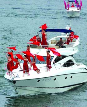浙江省淳安縣推出一項政策,鼓勵中高檔游艇落戶千島湖。雖然尚在籌建階段,但此舉引起各方關注。有人批評,如此為富人服務,是政府行政錯位的體現(xiàn);此舉將大大侵占千島湖作為國家風景旅游區(qū)的公眾資源,并給水域帶來污染。圖為千島湖國際游艇展上的“游艇模特秀”。