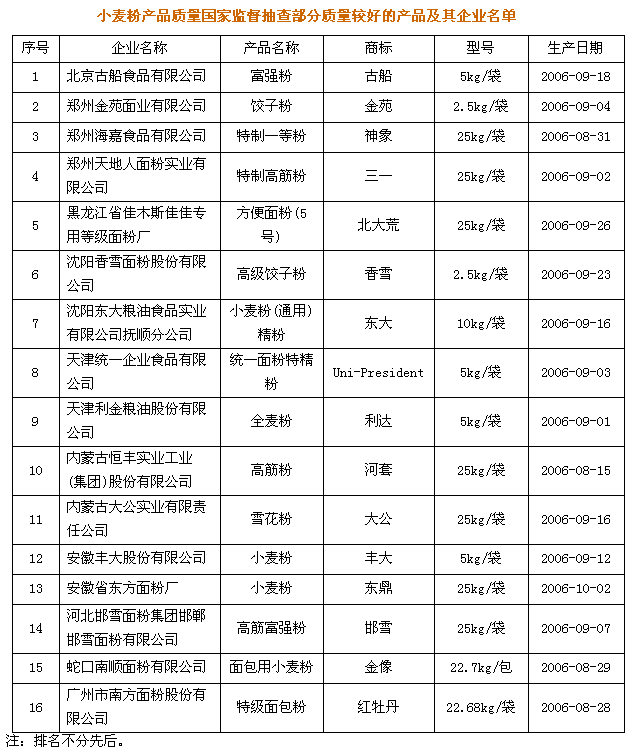 國家質(zhì)檢總局組織對普通小麥粉和專用小麥粉產(chǎn)品質(zhì)量進(jìn)行了國家監(jiān)督抽查,共抽查了北京、天津、河北、內(nèi)蒙古、遼寧、吉林、黑龍江、江蘇、安徽、山東、河南、廣東、四川等13個省、市、自治區(qū)224家企業(yè)生產(chǎn)的246種產(chǎn)品,產(chǎn)品抽樣合格率為95.5%。自2002年開始實施小麥粉市場準(zhǔn)入制度以來,質(zhì)檢總局加強(qiáng)了對小麥粉加工企業(yè)的監(jiān)管,小麥粉的產(chǎn)品質(zhì)量比2002年提高了60.9個百分點。