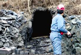 27日下午,門頭溝木城澗大華溝內(nèi)的一個非法小煤礦洞口,一名爆破人員正在放置炸藥。隨后,該煤礦被炸毀。