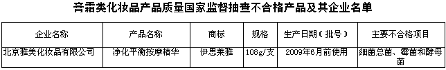 本次對膏霜類化妝品共抽查了北京、天津、上海、廣東、福建等5個省、直轄市40家企業(yè)生產(chǎn)的40種產(chǎn)品,產(chǎn)品抽樣合格率為97.5%。