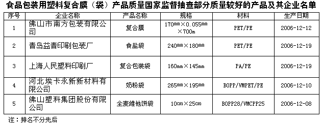 為維護(hù)消費(fèi)者的合法權(quán)益,促進(jìn)食品包裝行業(yè)健康發(fā)展,國(guó)家質(zhì)檢總局組織對(duì)食品包裝用塑料復(fù)合膜(袋)產(chǎn)品質(zhì)量進(jìn)行了國(guó)家監(jiān)督抽查,共抽查了北京、天津、河北、山東、江蘇、上海、浙江、廣東、福建等9個(gè)省、直轄市100家企業(yè)生產(chǎn)的100種產(chǎn)品,產(chǎn)品抽樣合格率為69%。