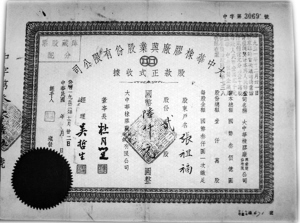 據(jù)有關(guān)專業(yè)人土介紹,我國最早的股票發(fā)行比我國最早的郵票還要早5年。第一張股票發(fā)行于清末的1872年,即李鴻章創(chuàng)辦的“輪船招商局”股票。由于發(fā)行時間早,能夠保留至今的好品相早期股票己寥寥無幾,導致價格大幅飆升。一張清光緒七年發(fā)行的“開平礦務(wù)局”股票,現(xiàn)市價大約為11萬元;一張清宣統(tǒng)三年發(fā)行的“津浦殖業(yè)銀行”股票目前的“出讓”價己達到了100萬元的天價。 收藏者邱先生認為:我國清朝、民國時期發(fā)行的股票總共有1萬余種,而目前只挖掘出700余種,尚不足其中的1/10。因此,早期股票還需要一個很長的挖掘過程,而這個過程同時也是一個收藏、史料價值和文物價值的挖掘過程。