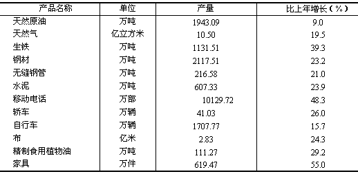 表3 主要工業(yè)產(chǎn)品產(chǎn)量
