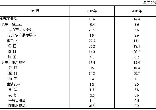 表2:工業(yè)品出廠價格比上年漲跌幅度
