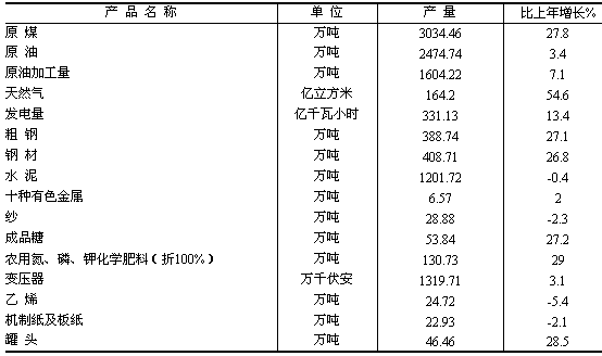 表5:2006年規(guī)模以上工業(yè)主要產品產量