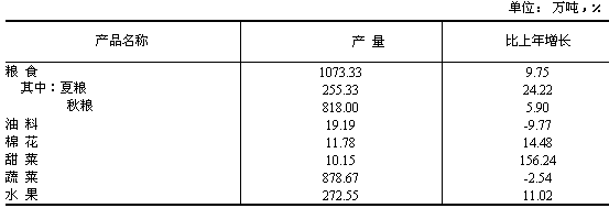 全年全省農作物總播種面積382.3萬公頃,比上年增加2.8萬公頃,增長0.7%。其中糧食作物種植面積為312.2萬公頃,增長2.9%,在糧食作物種植面積中,高產(chǎn)作物玉米的種植面積達到122.6萬公頃,增長3.5%。 糧食總產(chǎn)量達到1073.3萬噸,比上年增產(chǎn)9.8%,是我省歷史上的第3個高產(chǎn)年。其中,夏糧總產(chǎn)255.3萬噸,增產(chǎn)24.2%;秋糧總產(chǎn)818.0萬噸,增產(chǎn)5.9%。