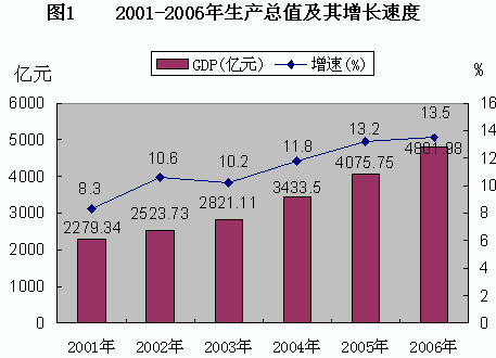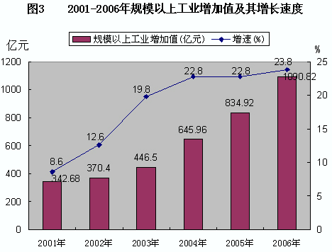 表3 2006年規(guī)模以上工業(yè)增加值及其增長(zhǎng)速度