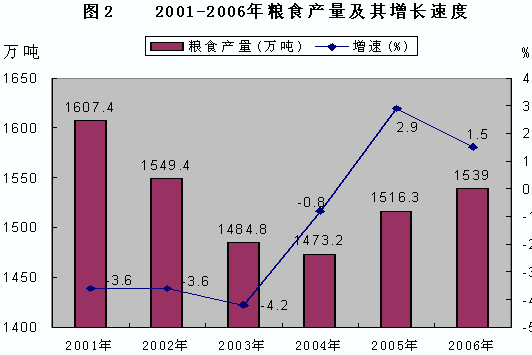 表2 2006年主要農(nóng)產(chǎn)品產(chǎn)量及其增長(zhǎng)速度