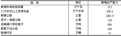表7 2006年固定資產(chǎn)投資新增主要生產(chǎn)能力