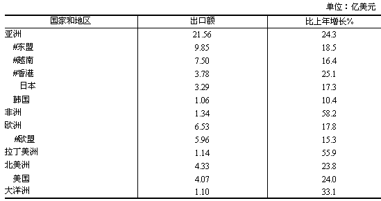 表9 2006年對(duì)主要國(guó)家和地區(qū)出口情況