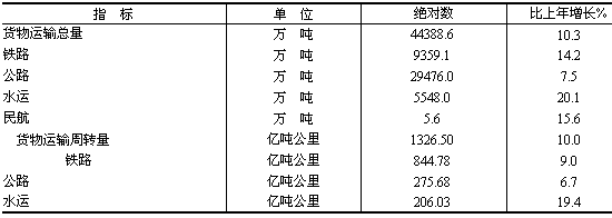 全年交通運(yùn)輸、倉(cāng)儲(chǔ)及郵電通信業(yè)增加值256.04億元,增長(zhǎng)8.6%。