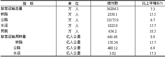 表11 2006年各種運(yùn)輸方式完成旅客運(yùn)輸量及其增長(zhǎng)速度