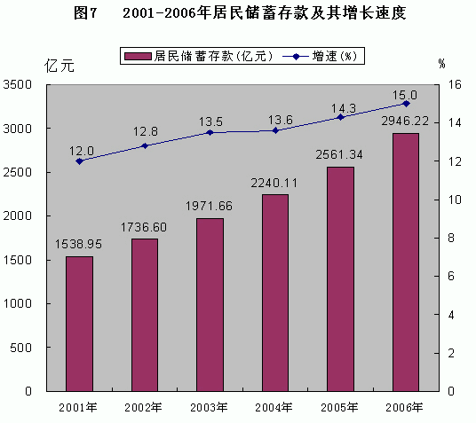 表12 2006年全部金融機(jī)構(gòu)存貸款及其增長(zhǎng)速度