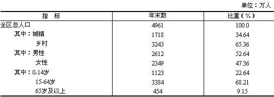 4961萬(wàn)人,比上年末增加36萬(wàn)人。年末常住人口(指常住廣西半年及以上的人口)4719萬(wàn)人。全年出生人口71萬(wàn)人,出生率為14.44‰;死亡人口30萬(wàn)人,死亡率為6.10‰;自然增長(zhǎng)率為8.34‰。出生人口性別比為119.23。