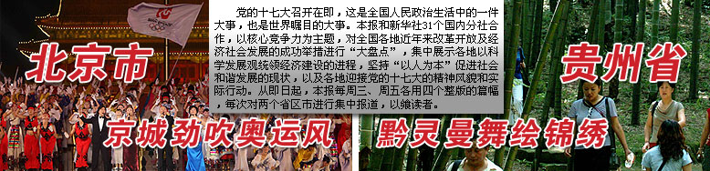 現(xiàn)在距離北京奧運會舉行還有不到一年的時間,而奧運年輕的脈動已經(jīng)為北京這座千年古都輸入新的生機和活力。 北京市發(fā)展和改革委員會副主任盧映川說,2002至2006年,是北京市改革開放以來發(fā)展成效最好的時期之一。[詳情] | | |