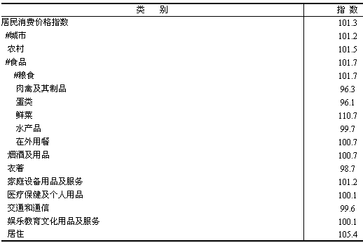 表1:2006年全省居民消費(fèi)價(jià)格指數(shù) (以上年同期為100)