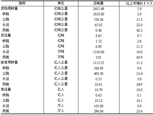 全年全省交通運(yùn)輸、倉(cāng)儲(chǔ)及郵政業(yè)實(shí)現(xiàn)增加值737.88億元,比上年增長(zhǎng)9.9%。 年末全省鐵路通車?yán)锍?944.2公里;高速公路通車?yán)锍?439公里。全年各種運(yùn)輸方式完成貨物周轉(zhuǎn)量2415.49億噸公里,比上年增長(zhǎng)5.9%;完成旅客周轉(zhuǎn)量1113.35億人公里,增長(zhǎng)11.2%。 全年全省郵電業(yè)務(wù)總量722.74億元,比上年增長(zhǎng)28.8%。其中,郵政業(yè)務(wù)總量36.52億元,增長(zhǎng)14.8%;電信業(yè)務(wù)總量686.22億元,增長(zhǎng)29.6%。年末局用電話交換機(jī)總?cè)萘?582.50萬(wàn)門,新增233.71萬(wàn)門;本地固定電話用戶2027.20萬(wàn)戶,新增163.70萬(wàn)戶;移動(dòng)電話用戶2345.00萬(wàn)戶,新增530萬(wàn)戶。電話普及率為44.8部/百人,增長(zhǎng)18.0%。年末計(jì)算機(jī)互聯(lián)網(wǎng)用戶327.30萬(wàn)戶,新增52.26萬(wàn)戶。