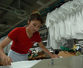 一位女工正在雅戈爾集團的制衣車間內(nèi)工作。本報記者 王定昶