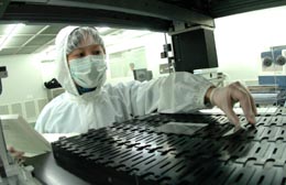 天津生物芯片技術(shù)有限公司的技術(shù)人員在作芯片點樣準備。 本報記者:劉海峰 攝
