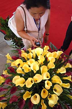 一位市民在花卉博覽會(huì)上拍攝。 | 云南是當(dāng)之無(wú)愧的“中國(guó)花卉產(chǎn)業(yè)大省”。據(jù)云南省花卉產(chǎn)業(yè)聯(lián)合會(huì)統(tǒng)計(jì),2006年云南省花卉產(chǎn)業(yè)總產(chǎn)值71.99億元;自1994年以來(lái),云南鮮切花產(chǎn)量已連續(xù)13年雄踞全國(guó)第一,在全國(guó)鮮切花消費(fèi)市場(chǎng)上,云南鮮切花占據(jù)70%左右的市場(chǎng)份額。 “云花”為什么這樣“紅”?云南省花卉產(chǎn)業(yè)聯(lián)合會(huì)有關(guān)人士分析,原因之一是云南有著得天獨(dú)厚的氣候和地理?xiàng)l件,另一方面則與云南地方政府的大力扶持密切相關(guān)。 云南獨(dú)特的立體氣候,使各種氣候類(lèi)型的花卉,無(wú)論溫帶的還是熱帶、亞熱帶的,都能在這里找到自己的適生地。尤其在以昆明、玉溪為中心的滇中地區(qū),冬無(wú)嚴(yán)寒、夏無(wú)酷暑,世界主要鮮切花品種在這一帶都能實(shí)現(xiàn)周年規(guī);a(chǎn),而且品質(zhì)優(yōu)良。 “十五”以來(lái),云南省委、省政府把發(fā)展花卉產(chǎn)業(yè)作為實(shí)施綠色經(jīng)濟(jì)強(qiáng)省戰(zhàn)略的重要內(nèi)容,從政策扶持、資金投入、環(huán)境條件等方面采取一系列措施,促進(jìn)花卉產(chǎn)業(yè)發(fā)展。云南省登記在冊(cè)的花卉及相關(guān)企業(yè)達(dá)1028家,從事鮮切花、盆花及食用、藥用、工業(yè)用花卉生產(chǎn)和園林綠化苗木生產(chǎn)的農(nóng)戶(hù)達(dá)8.7萬(wàn)余戶(hù)。 在產(chǎn)業(yè)規(guī)模實(shí)現(xiàn)快速發(fā)展的同時(shí),云南花企注重?fù)碛凶灾髦R(shí)產(chǎn)權(quán)的花卉新品種研發(fā)。據(jù)省花產(chǎn)聯(lián)統(tǒng)計(jì),截至今年5月底,云南花企和科研單位擁有鮮切花新品種自主知識(shí)產(chǎn)權(quán)證書(shū)達(dá)23個(gè),還有一批新品種已經(jīng)通過(guò)初審。有的花農(nóng)也自發(fā)購(gòu)買(mǎi)國(guó)外專(zhuān)利新品種花卉,以提升產(chǎn)品質(zhì)量。2006年5月,呈貢縣花農(nóng)魯榮華通過(guò)代理機(jī)構(gòu),向德國(guó)坦陶公司引進(jìn)1萬(wàn)株玫瑰新品種“櫻桃白蘭地”,一時(shí)間在業(yè)界引起轟動(dòng)。 盡管在產(chǎn)業(yè)規(guī)模等方面實(shí)現(xiàn)了快速發(fā)展,但云南花卉產(chǎn)業(yè)也存在不少困難和問(wèn)題。去年10月,云南省政府出臺(tái)了《關(guān)于加快發(fā)展出口導(dǎo)向型花卉產(chǎn)業(yè)的意見(jiàn)》,《意見(jiàn)》提出:到2010年,云南花卉產(chǎn)業(yè)總產(chǎn)值力爭(zhēng)實(shí)現(xiàn)140億元,出口率30%以上!笆晃濉逼陂g云南要進(jìn)一步加快花卉產(chǎn)業(yè)發(fā)展步伐,推進(jìn)實(shí)施優(yōu)質(zhì)花卉倍增、國(guó)際市場(chǎng)拓展、物流運(yùn)輸通暢、品種研發(fā)創(chuàng)新、“云花”品牌打造五大工程,繼續(xù)保持“云花”在國(guó)內(nèi)市場(chǎng)的領(lǐng)先地位,并把云南花卉建成優(yōu)勢(shì)明顯的出口導(dǎo)向型產(chǎn)業(yè)。 |