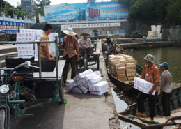 廣西東興市邊民在北侖河搬運(yùn)從越南進(jìn)口的貨物。新華社記者:周華