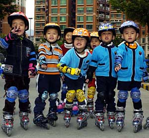 | 2006年榮獲“國際最適宜人居社區(qū)獎”的深圳市梅林一村社區(qū)的小朋友們在社區(qū)內(nèi)練習(xí)輪滑。攝影/本報記者