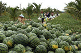 海南陵水縣瓜農(nóng)在收獲反季節(jié)西瓜。本報(bào)記者:姜恩宇 攝
