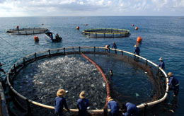 三亞市海域的大型深海網(wǎng)箱養(yǎng)殖場。本報(bào)記者:姜恩宇 攝